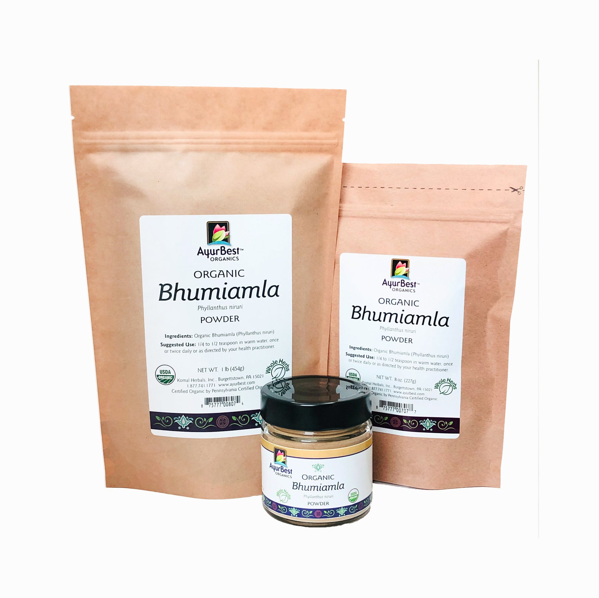 Bhumiamla/ Bhumiamalaki (Phyllanthus niruri) is a classic Ayurvedic herb that is often used for the liver. It is a short plant that is close to the earth or "Bhumi" and has berries on the leaf stalk that look like miniature Amla berries, thus the name sake Bhumi Amla. Though its taste is considered very bitter, it acts as a soothing, cooling and cleansing agent. Bhumiamla has been used for centuries in traditional medicine throughout South and south-east Asia.