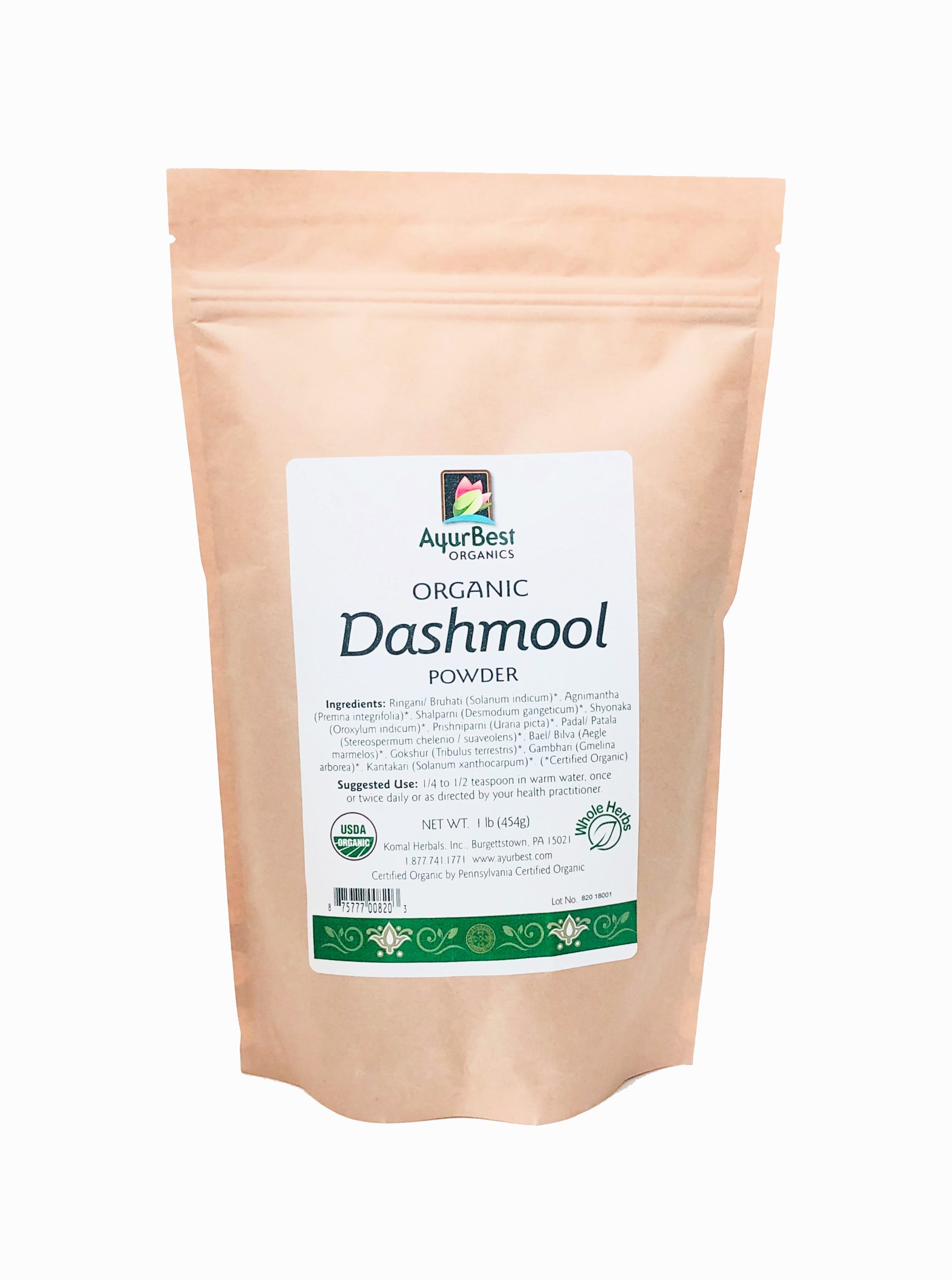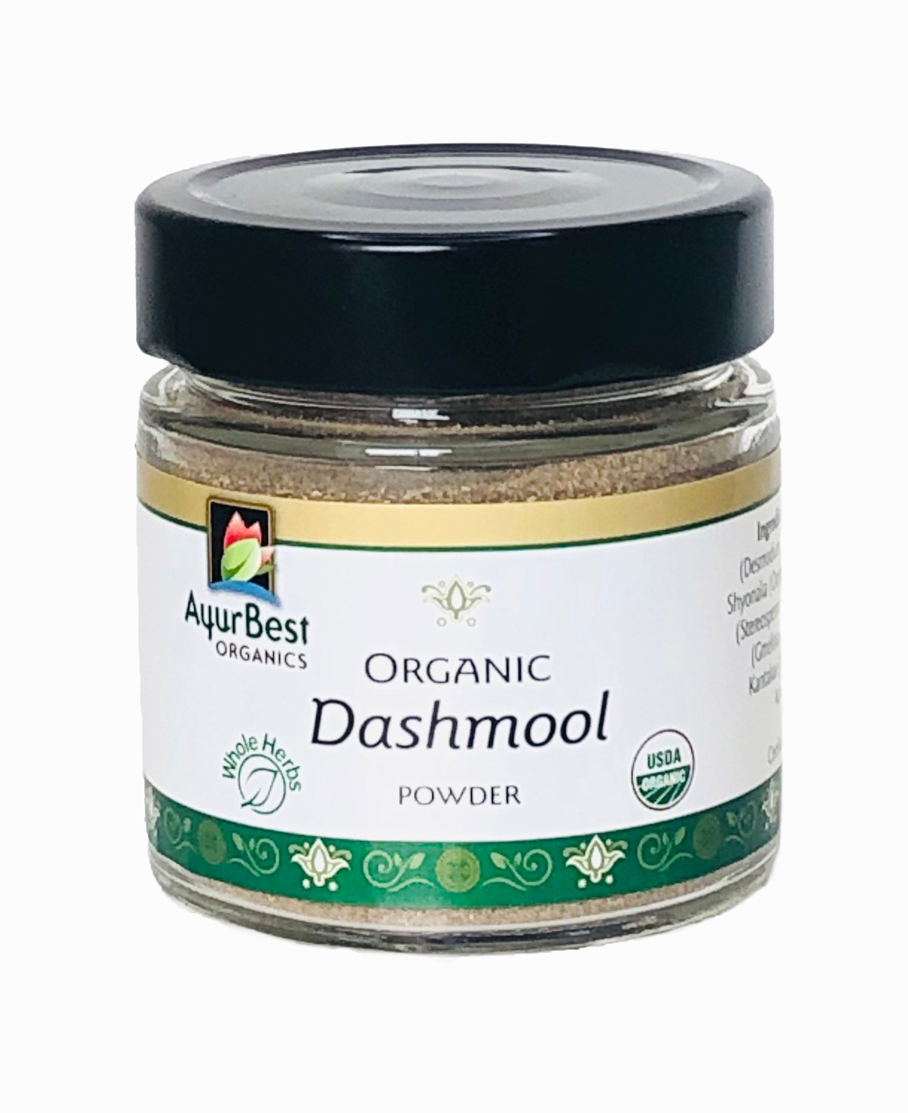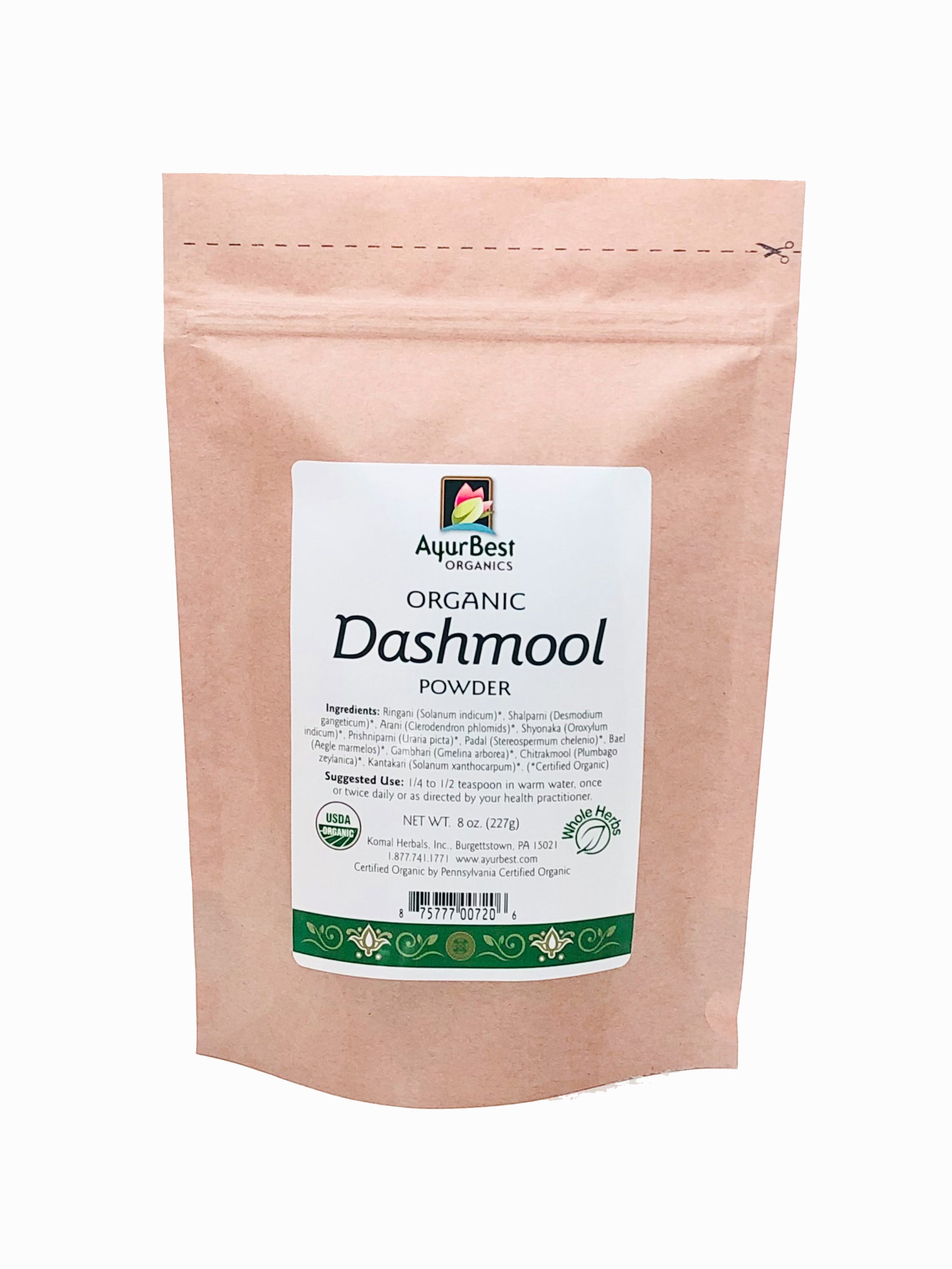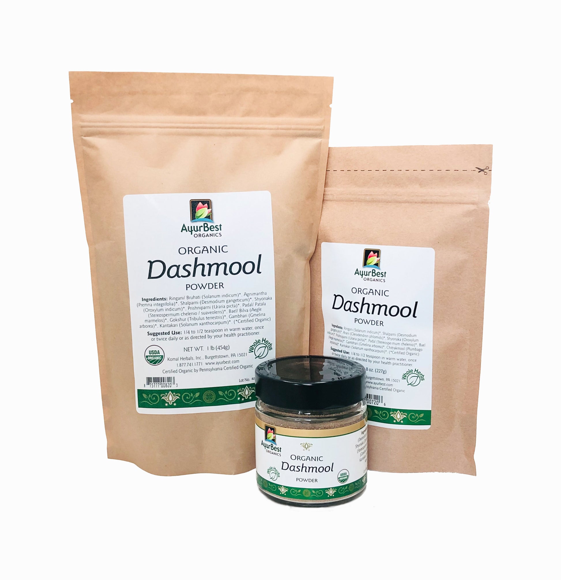 Dashmool, "dash" means ten and "mool/mula" means roots. The literal meaning of the word is ten roots, which is what this ancient Indian formula is made from to help promote good health with focus on to nerves, muscles, respiratory, bones and joints. The ingredients individually can support a variety of issues but combined help provide a boost for daily balance. It is most often brewed in a tea by itself or the tea is used in other concoctions such as herbal jam.