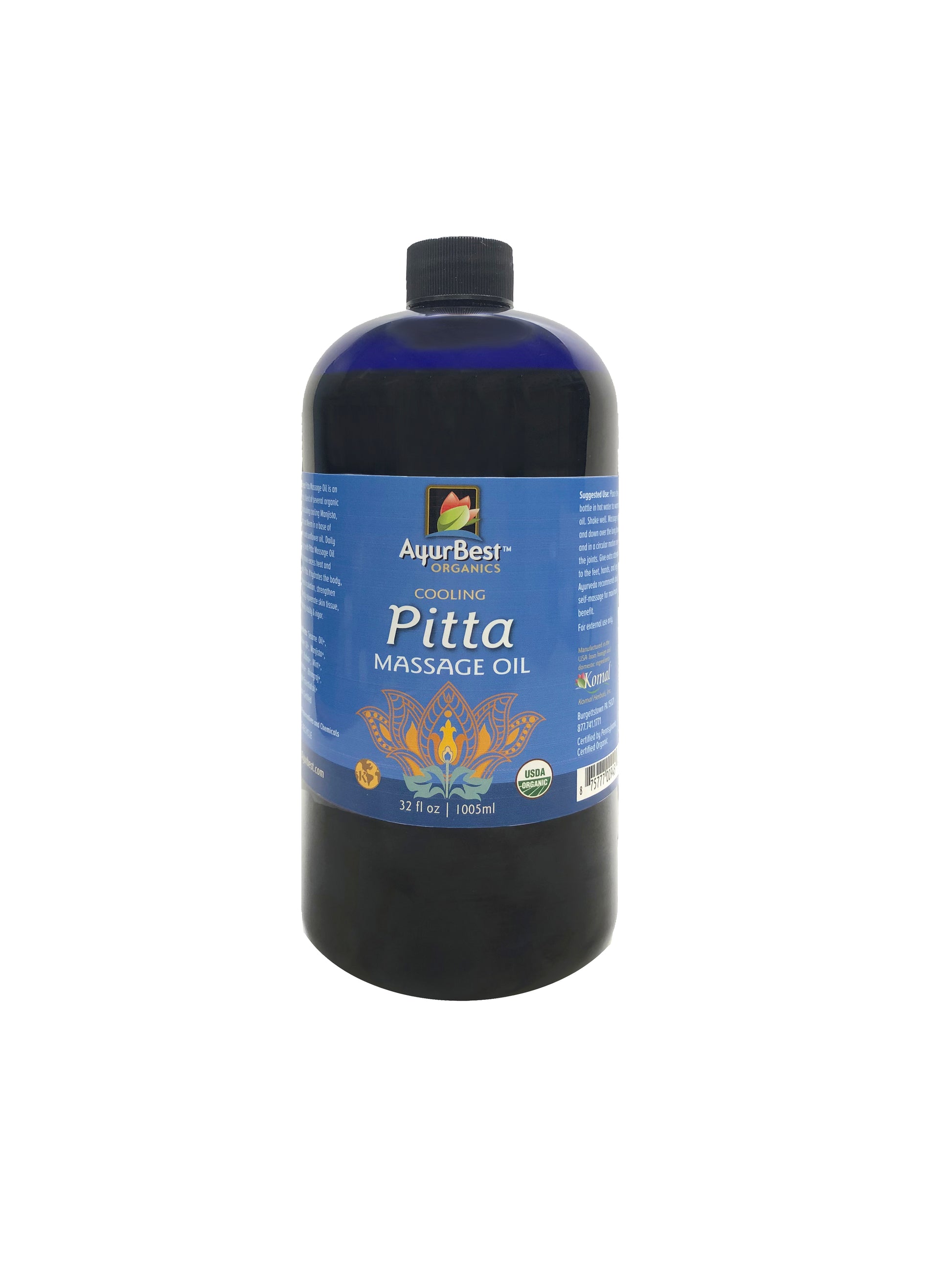 AyurBest Pitta Massage Oil is an aromatic blend of several organic herbs including cooling Manjista, Brahmi and Neem in a base of sesame and sunflower oil. Daily massage with Pitta Massage Oil helps remove excess heat and balance Pitta.*
