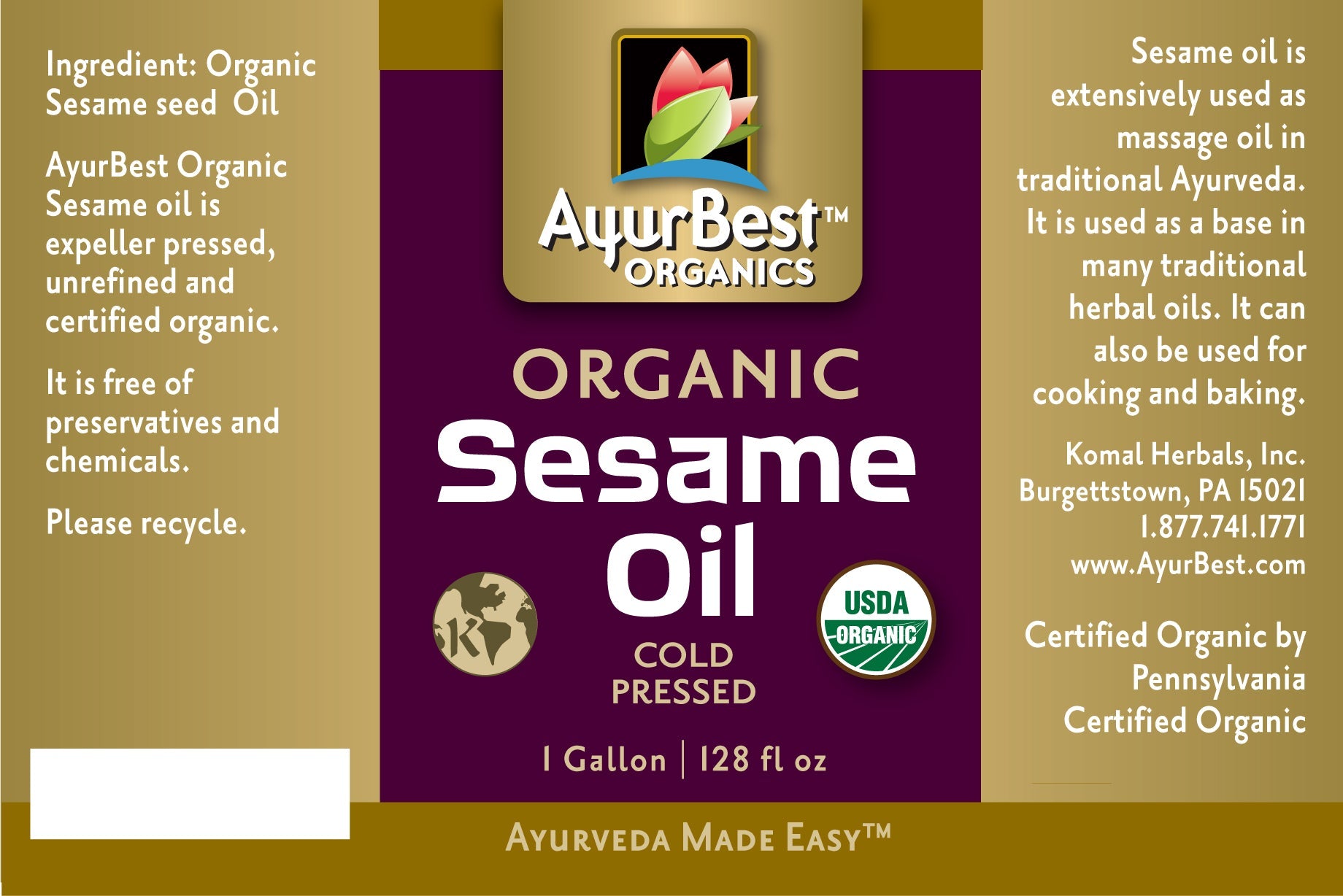 AyurBest Sesame oil is unrefined and certified organic.