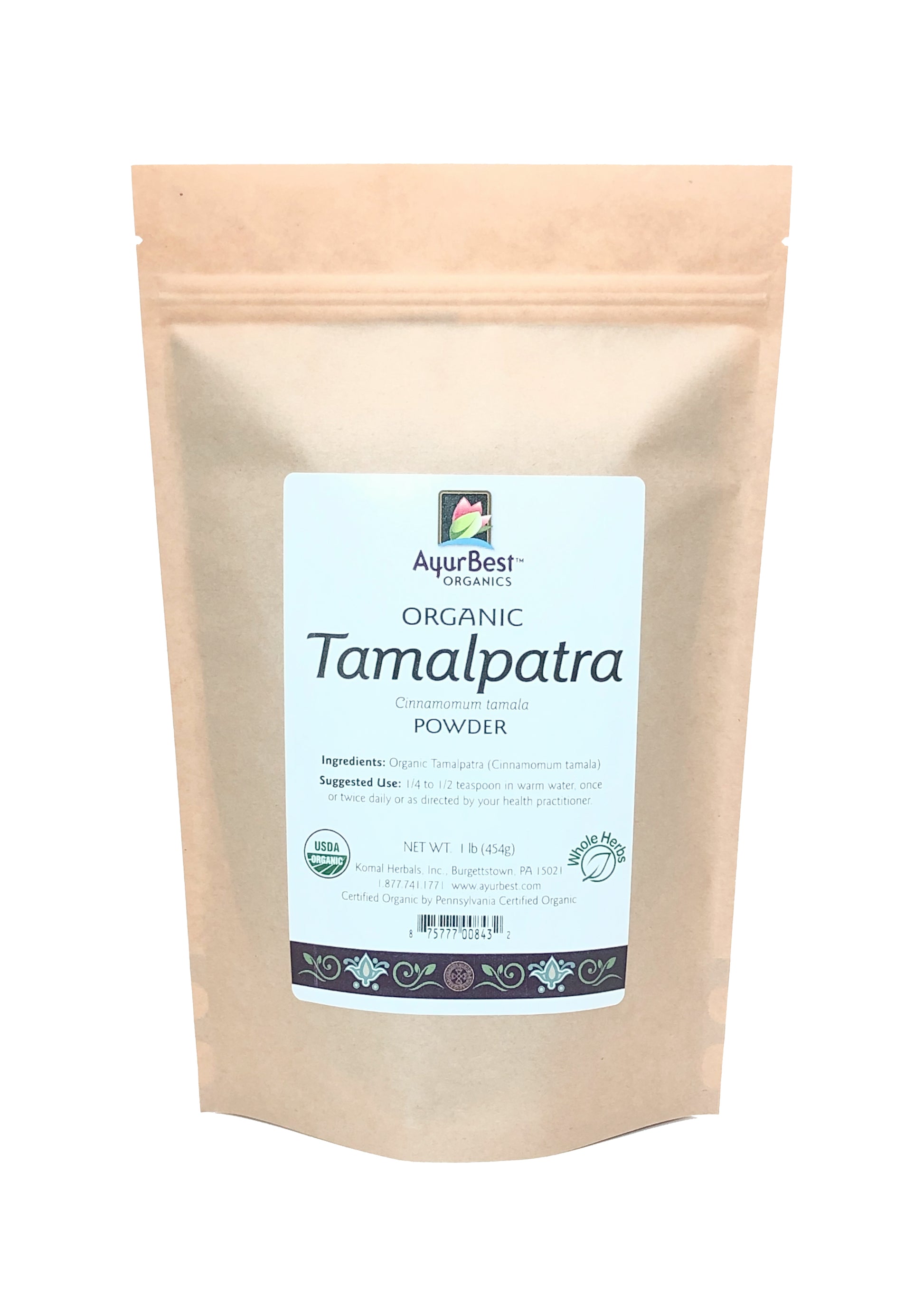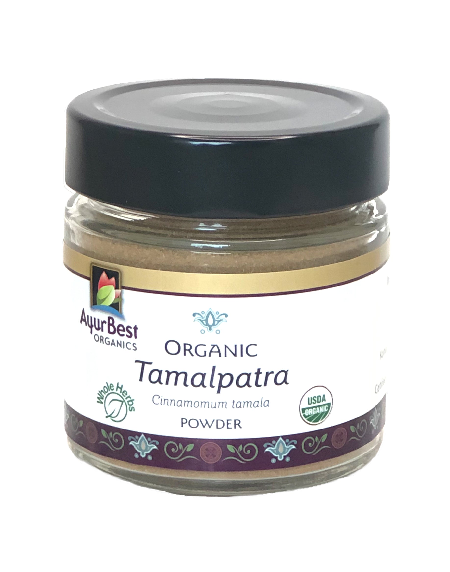 Tamalpatra also known as Tej Patta or  Indian bay leaf, is a tree that is native to India, Nepal, Bangladesh, Bhutan and China. The leaves give off a clove-like aroma with a peppery taste making it a great culinary addition as well as beneficial to your health. Dried and ground, Indian Bay leaves are added to spice mixes like Garam Masala. It is warming and helps in pacifying Vata and Kapha dosha and increasing Pitta dosha.
