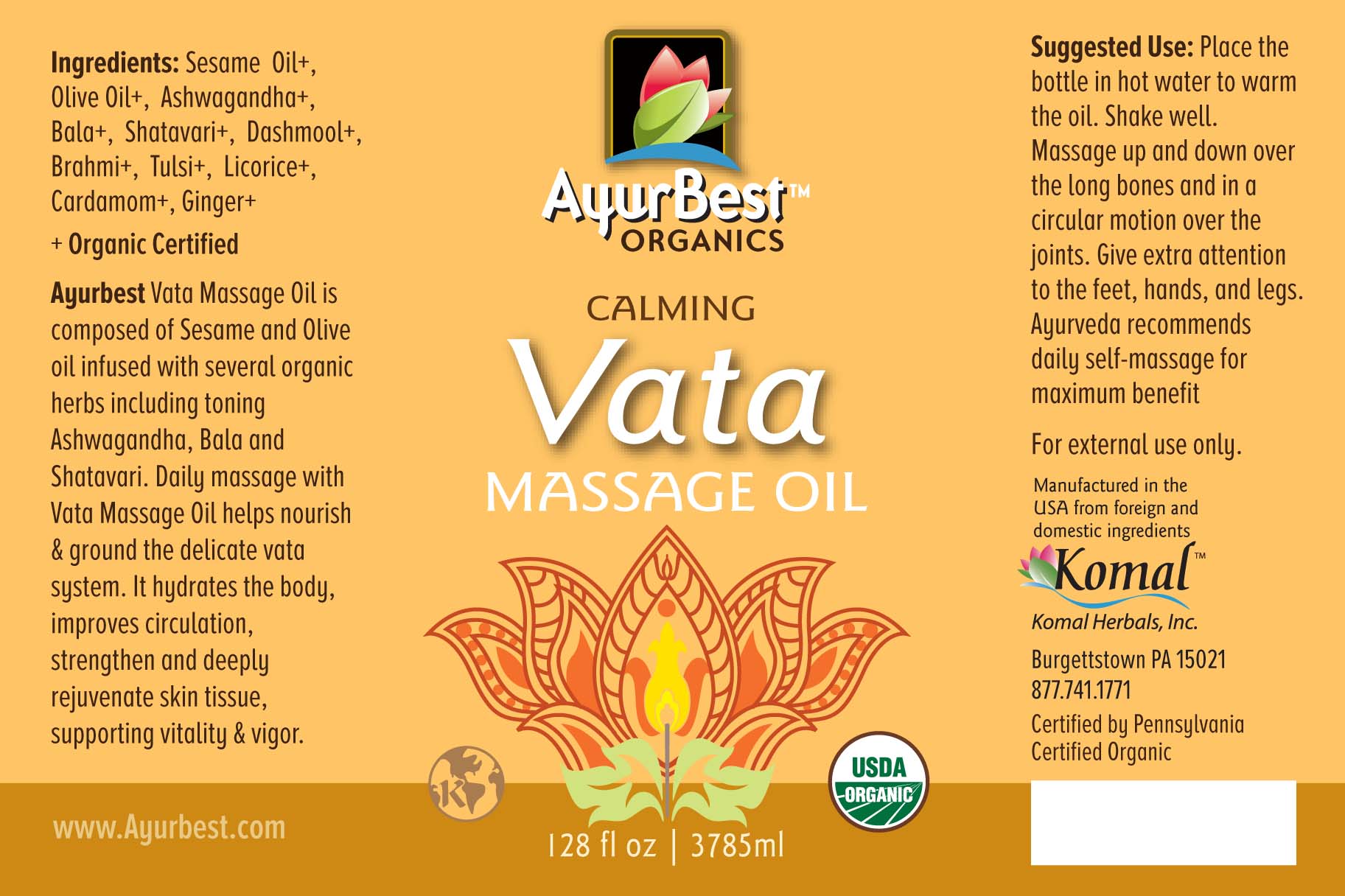 AyurBest Vata Massage Oil is composed of Sesame and Olive Oil infused with several organic herbs including toning Ashwagandha, Bala and Shatavari. Daily Massage with Vata Massage Oil helps nourish & ground the delicate vata system.*