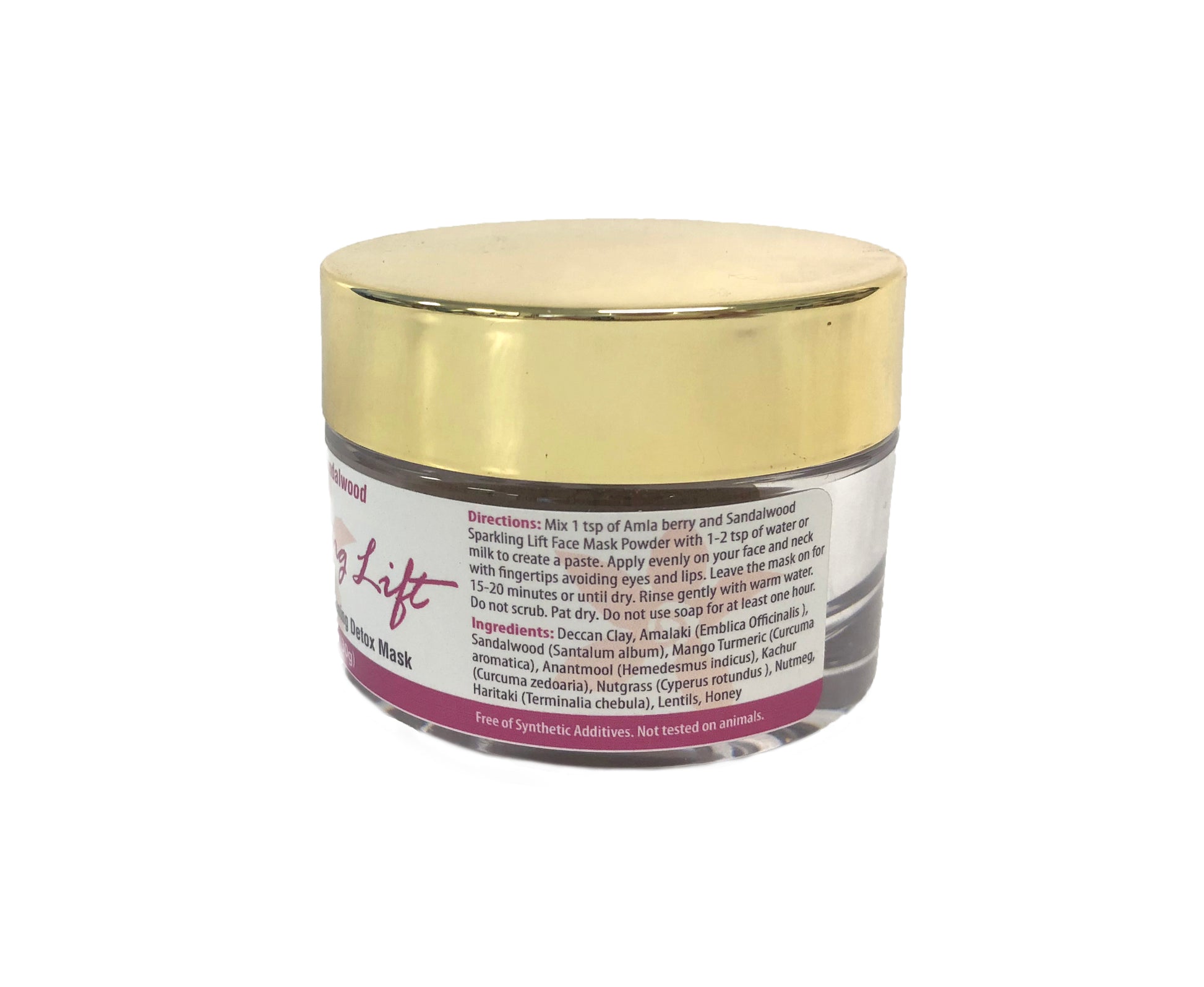 Suggested Use: Mix 1 tsp of Amla berry and Sandalwood Sparkling Lift Face Mask Powder with 1-2 tsp of water or milk, to create a paste. Apply thin layer to cleansed skin, avoiding the eye area. Leave on for 15-20 minutes and rinse thoroughly with lukewarm water. Do not scrub, pat dry. Do not use soap for at least one hour.
